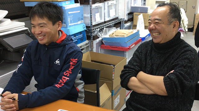 「KATAYAMA PLANNING株式会社」に訪問し、元F1ドライバーの片山右京監督のプロ自転車チーム:TeamUKYOのマネージャーの沼澤祐介氏と、ゼネラルマネージャーの桑原忠彦氏にお話を聞かせていただきました。左から、沼澤氏と桑原氏です。