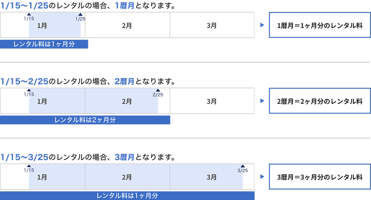 レンタルのご利用期間は、お客様にご指定いただいた「開始日」から「終了日」までとなります(1日単位でのご契約)。期間や台数についても柔軟に対応しており、1台から大型案件までご要望に応じたご提案が可能です。